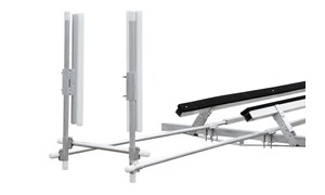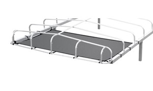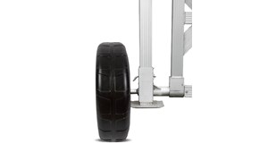 Kits can be installed in place of the standard boat cradles. Options include wood and adjustable aluminum rack kits that lift under the pontoon’s deck and serve as positioning guides.